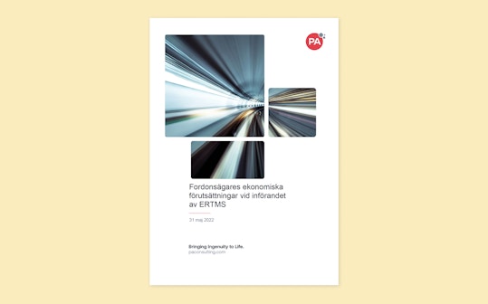 In our report first published in 2022, PA set out the financing challenges involved in providing the onboard equipment needed for the implementation of ERTMS in Sweden. ERTMS is critical to ensuring a safe and competitive railway and contributing to a faster transition to meeting climate goals. The government’s decision, not to provide state aid and the lack of systematic financing tools, risks eliminating smaller players in the railway market and driving up costs. The report sets out a number of options for long term financing solutions which would enable operators to meet the goal of converting all vehicles by 2029.